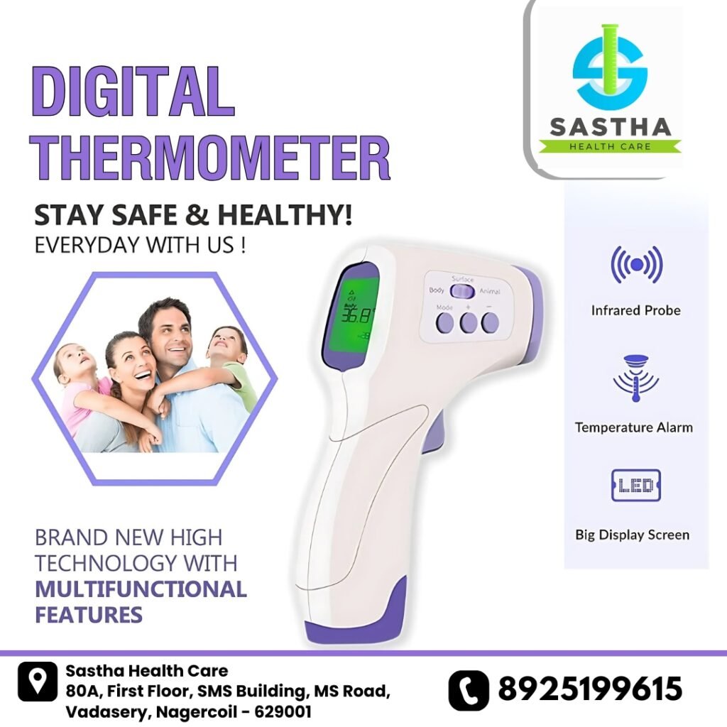 A digital thermometer is an essential tool for every home. By choosing Sastha Healthcare in Nagercoil, you get fast, accurate, and safe temperature readings. Also, it helps detect fever early and monitor health effectively. Therefore, invest in a high-quality digital thermometer and take control of your family’s health today.
